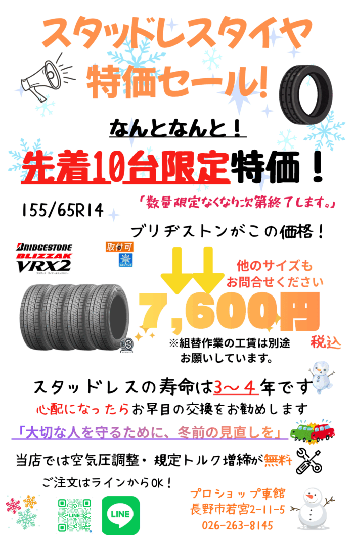 スタッドレスタイヤを購入するか迷っている方は是非ご相談ください👍