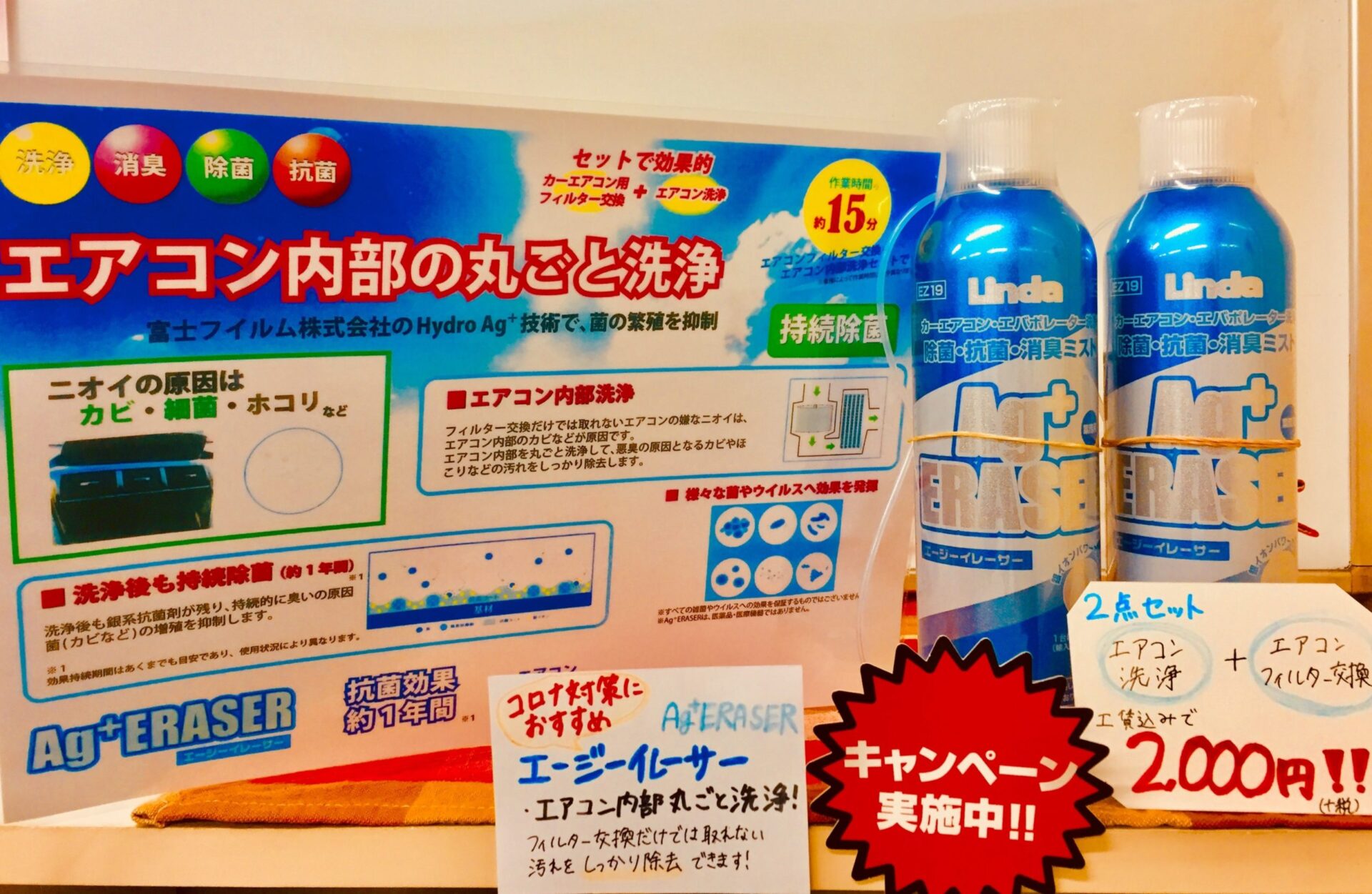 さて車館では、エアコン内部を丸ごと洗浄できる「エージ―イレーサー」を使ったお得なキャンペーンが始まりました!
