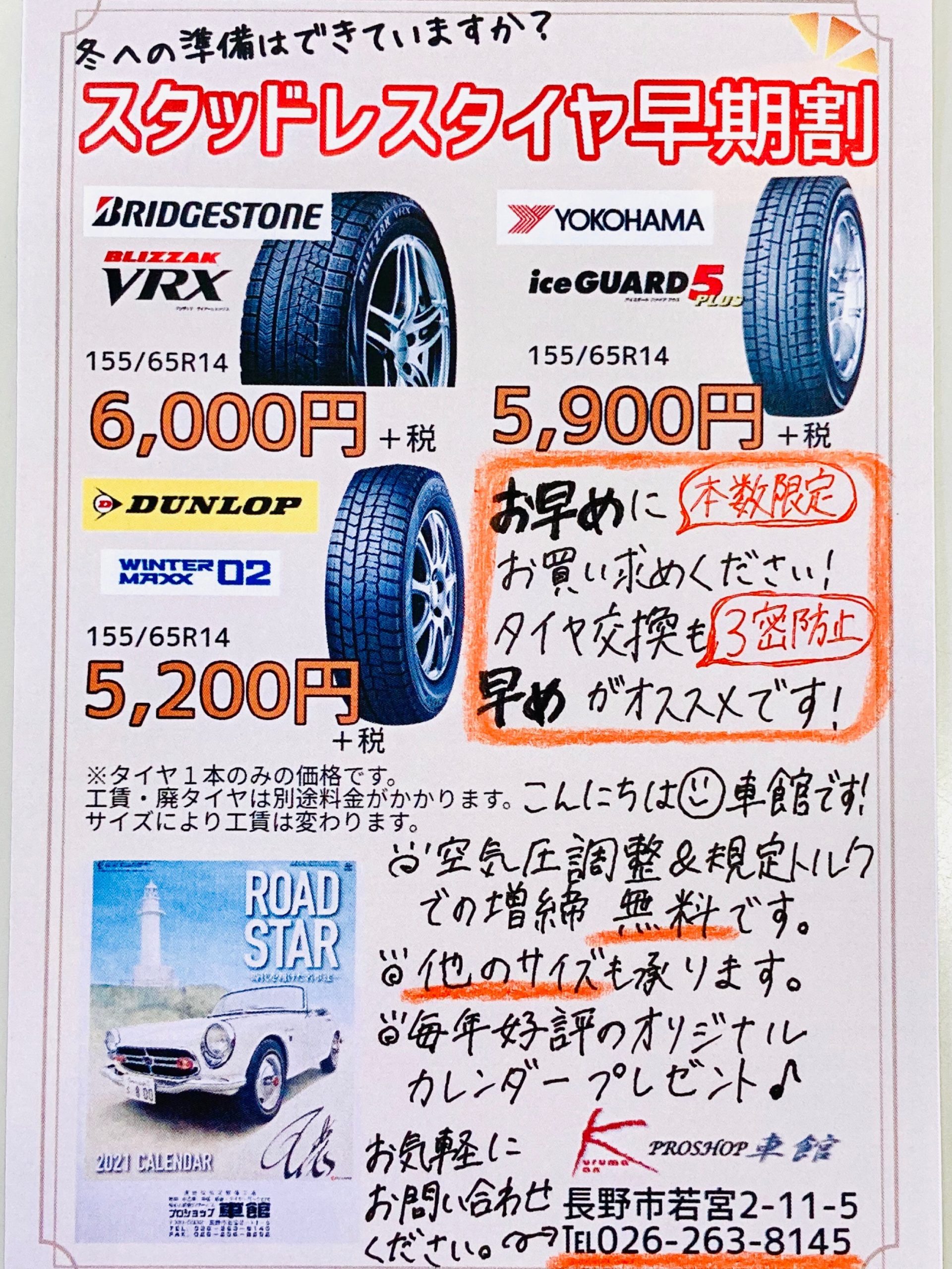 コロナ禍ですので、三密防止のためにも早めのタイヤ交換がおすすめです。