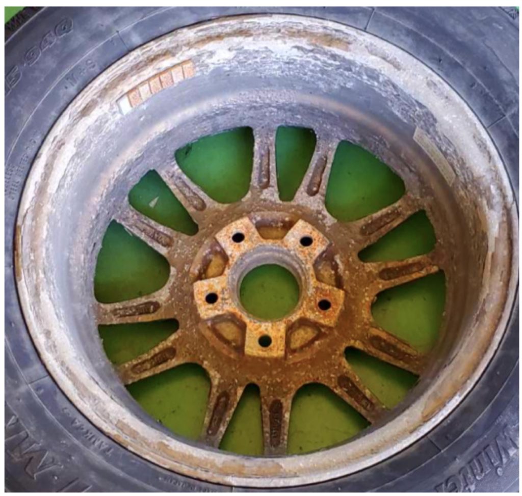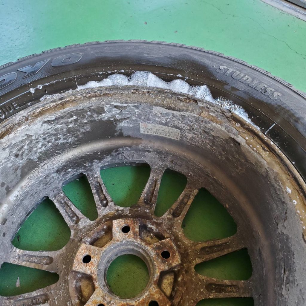 このようになっていると、ホイールが腐食しているために、タイヤは新しいのに空気が抜けていくという現象が起こります。