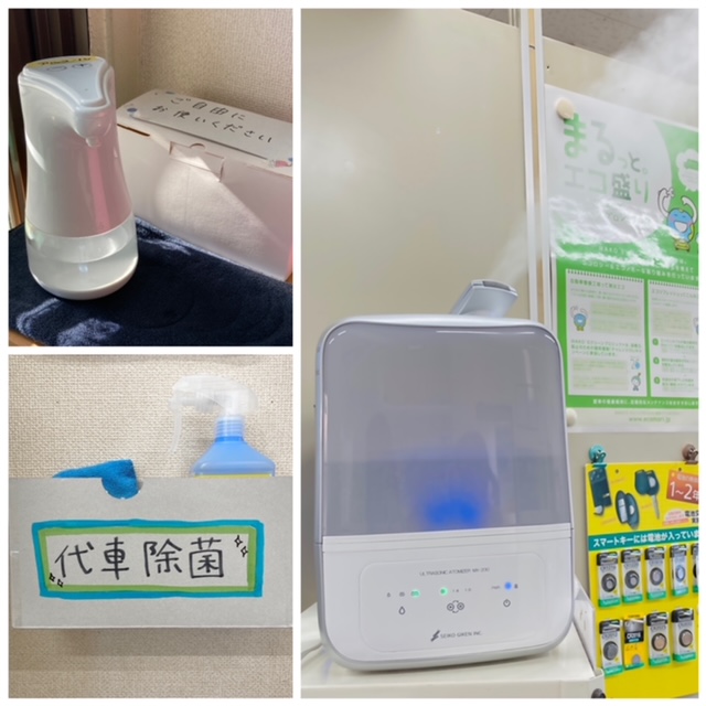 定期的な拭き掃除や非接触型のアルコール消毒、アクリル板の設置、代車の除菌(使用ごと)などの感染症対策に取り組んでおります。