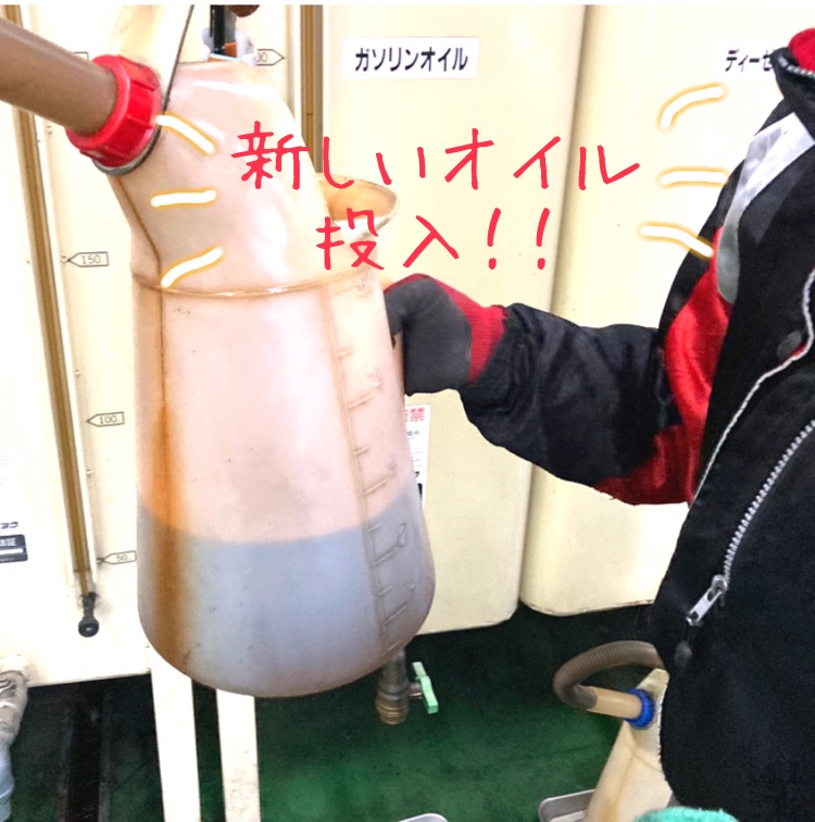 オイルタンクに溜まった古いオイルを出していきます↓↓