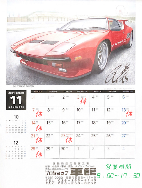11月営業日のお知らせ
