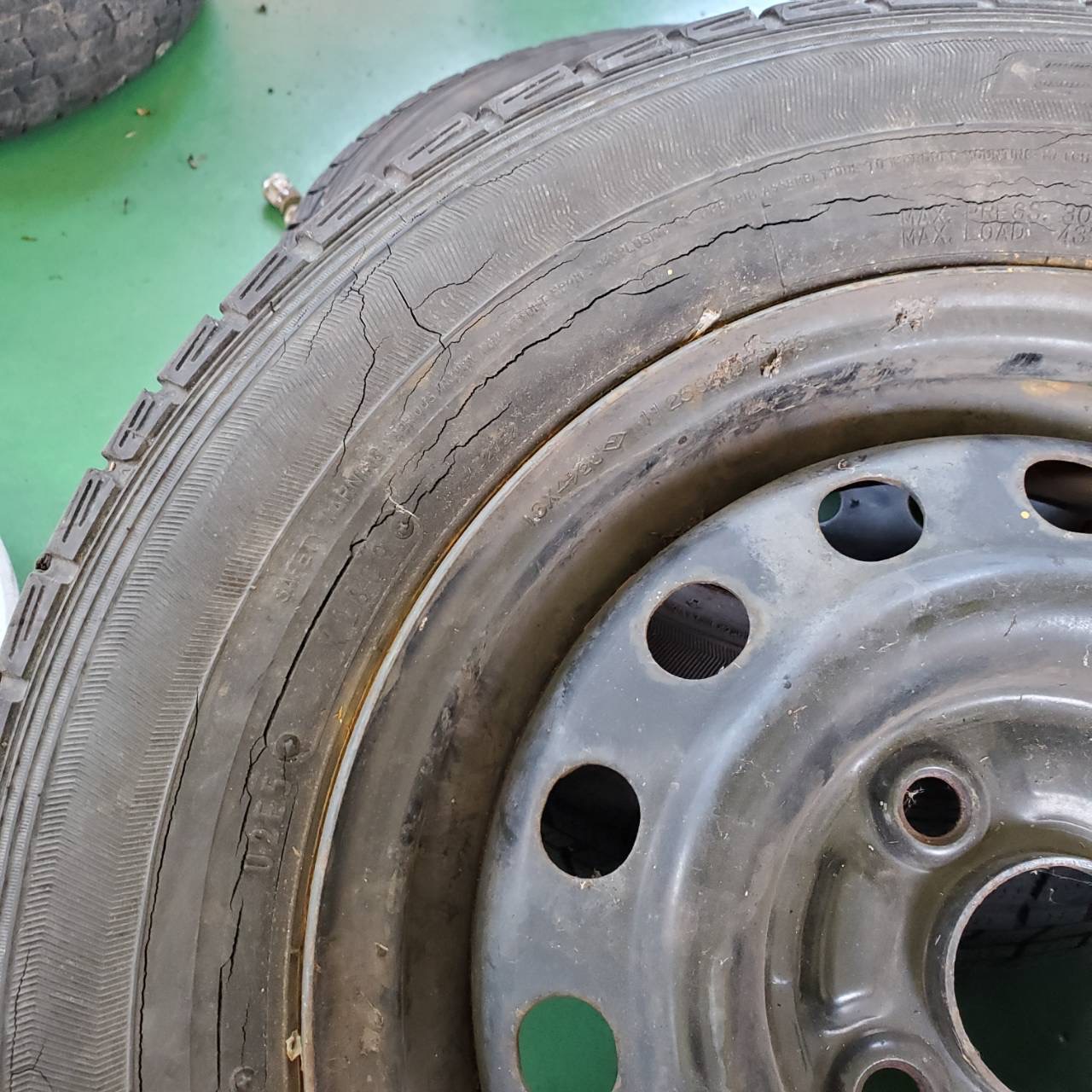 タイヤもひび割れが進み非常に危険な状態です↓↓