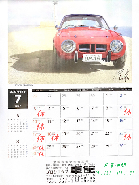 ブログ7月営業日のお知らせ2022.06.10 「7月営業日のお知らせ」 こんにちは☀ 先日、藤の花を見てきました! とってもきれいでした😊 自然はやはり癒されますね~ さて、7月の営業日をお知らせいたします。 ご来店お待ちしております🙌 投稿ナビゲーション