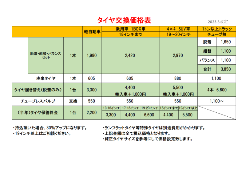 タイヤ交換で来店の際は混み合っている時間もございますので、お時間に余裕を持ってお越しいただけると幸いです。
