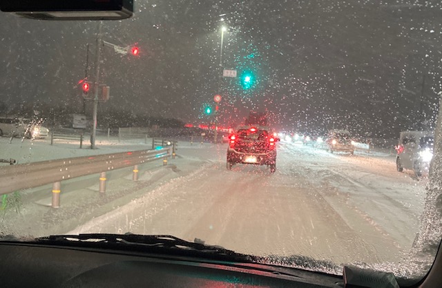 24日の午後から一気に雪が降り始め、長野市内は各地で渋滞が発生していました。