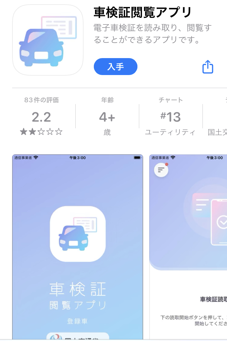 一般のお客様は、「車検証閲覧アプリ」というものが誕生しましたので、こちらのアプリをインストールしていただきICタグにスマートフォンを近づけて読み取ります。