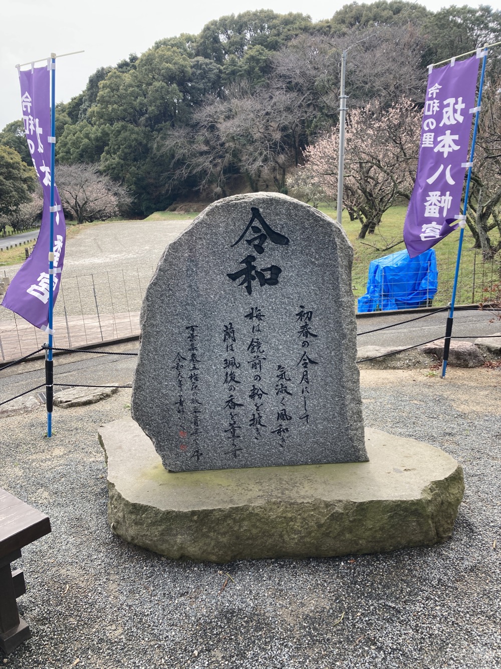 なぜここが令和ゆかりの地と言いますと、令和の由来となった「梅花の宴」が行われた大伴旅人の屋敷があった場所らしいです。(正確な場所は分かっていないそう)