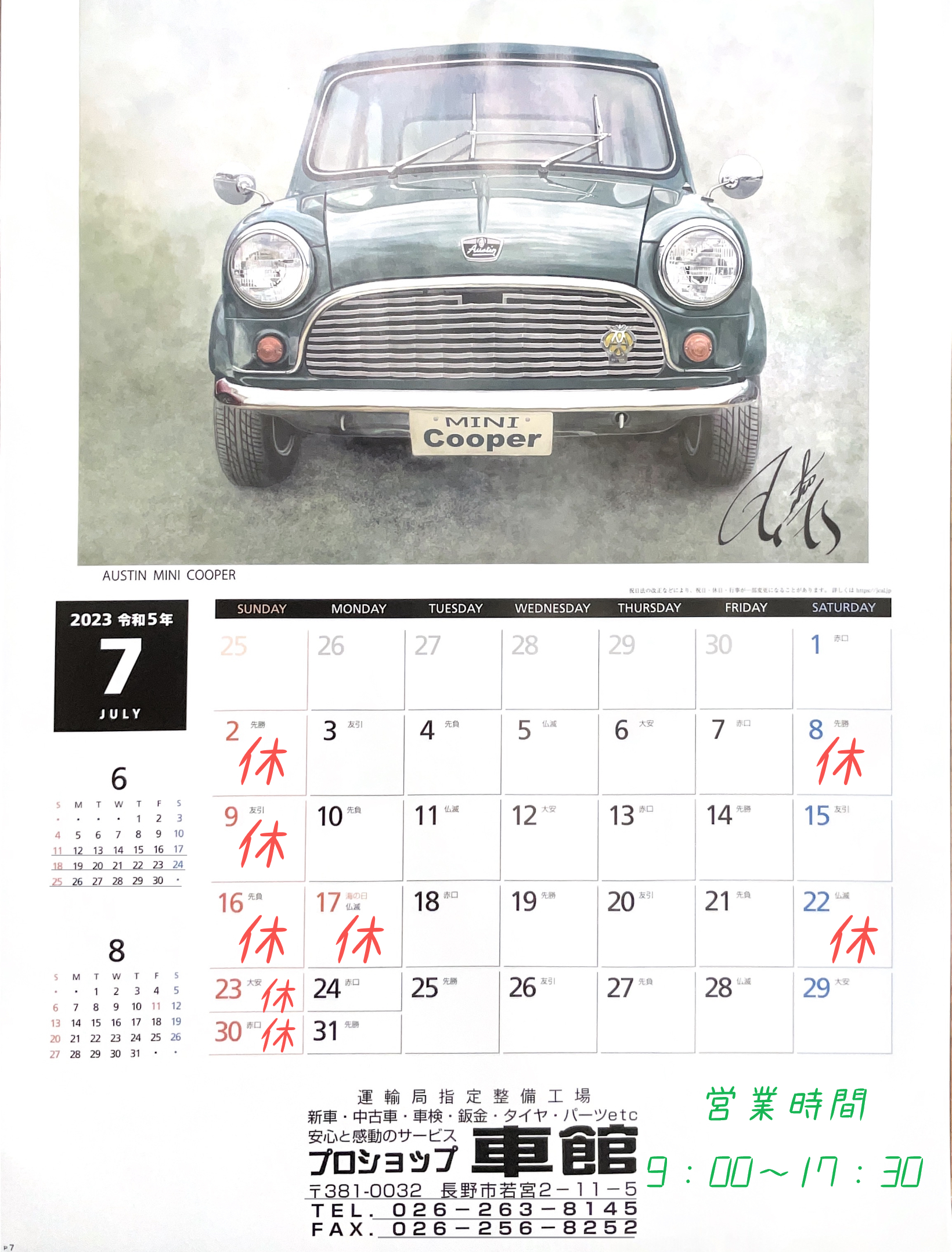ブログ7月営業日のお知らせ2023.06.09 「7月営業日のお知らせ」 こんにちは⭐ 長野でも梅雨入りしましたね☔ じめじめむしむしした日々になるんだろうな~😥 さて、7月の営業日をお知らせいたします。 車検、点検、オイル交換などご来店お待ちしております🙌 投稿ナビゲーション