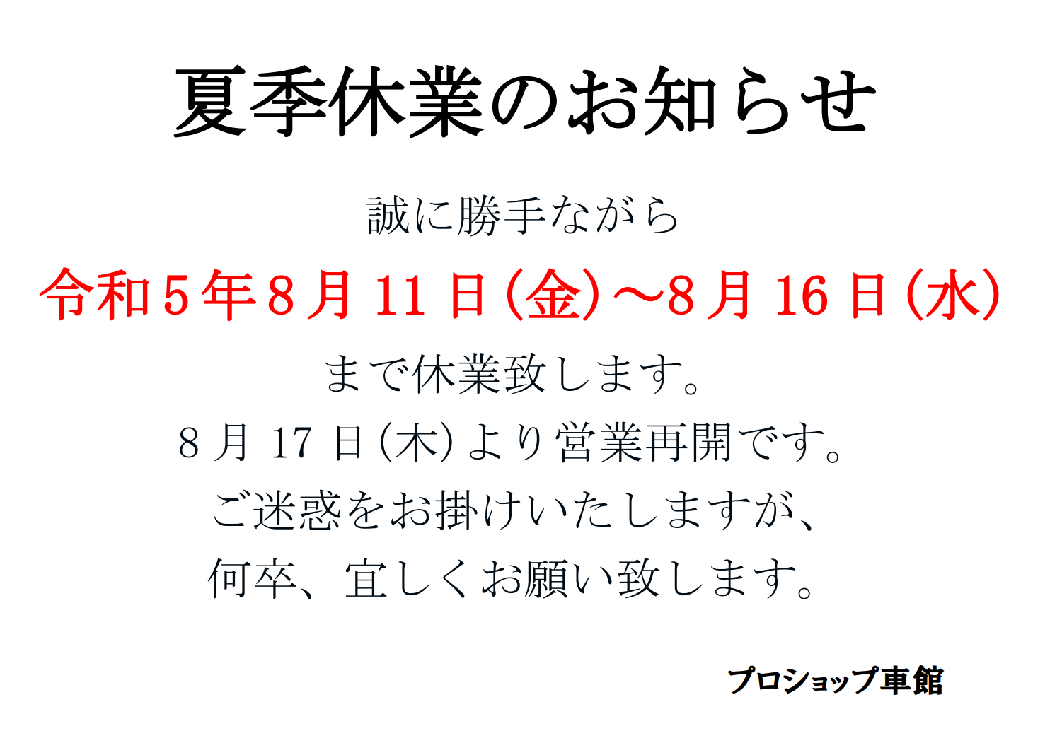 「お盆休みのお知らせ」