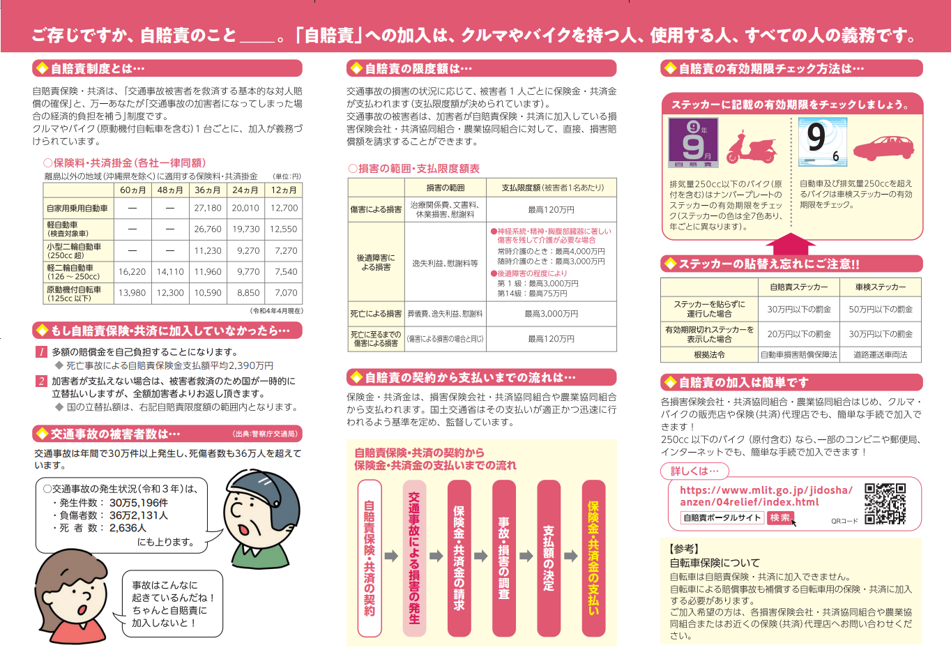 自賠責保険は、「交通事故被害者を救済する基本的な対人賠償の確保」と、万一「交通事故の加害者になってしまった場合の経済的負担を補う」制度です。
