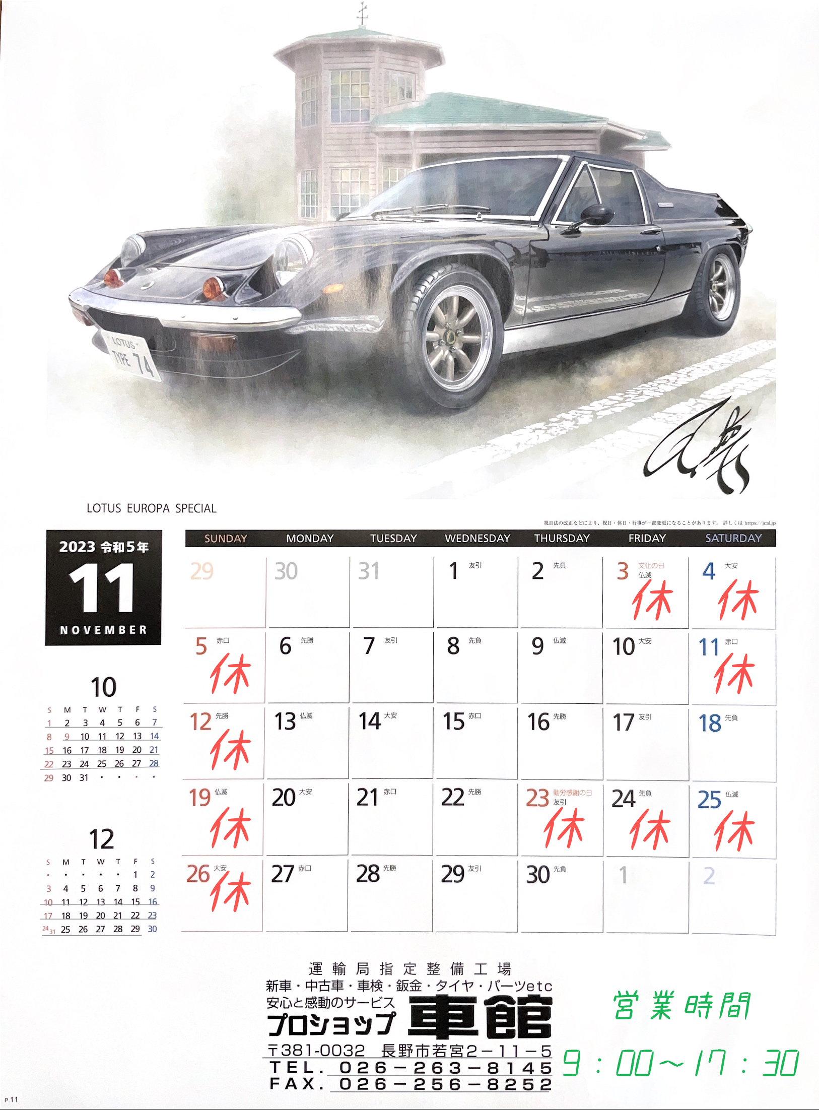 11月営業日のお知らせ