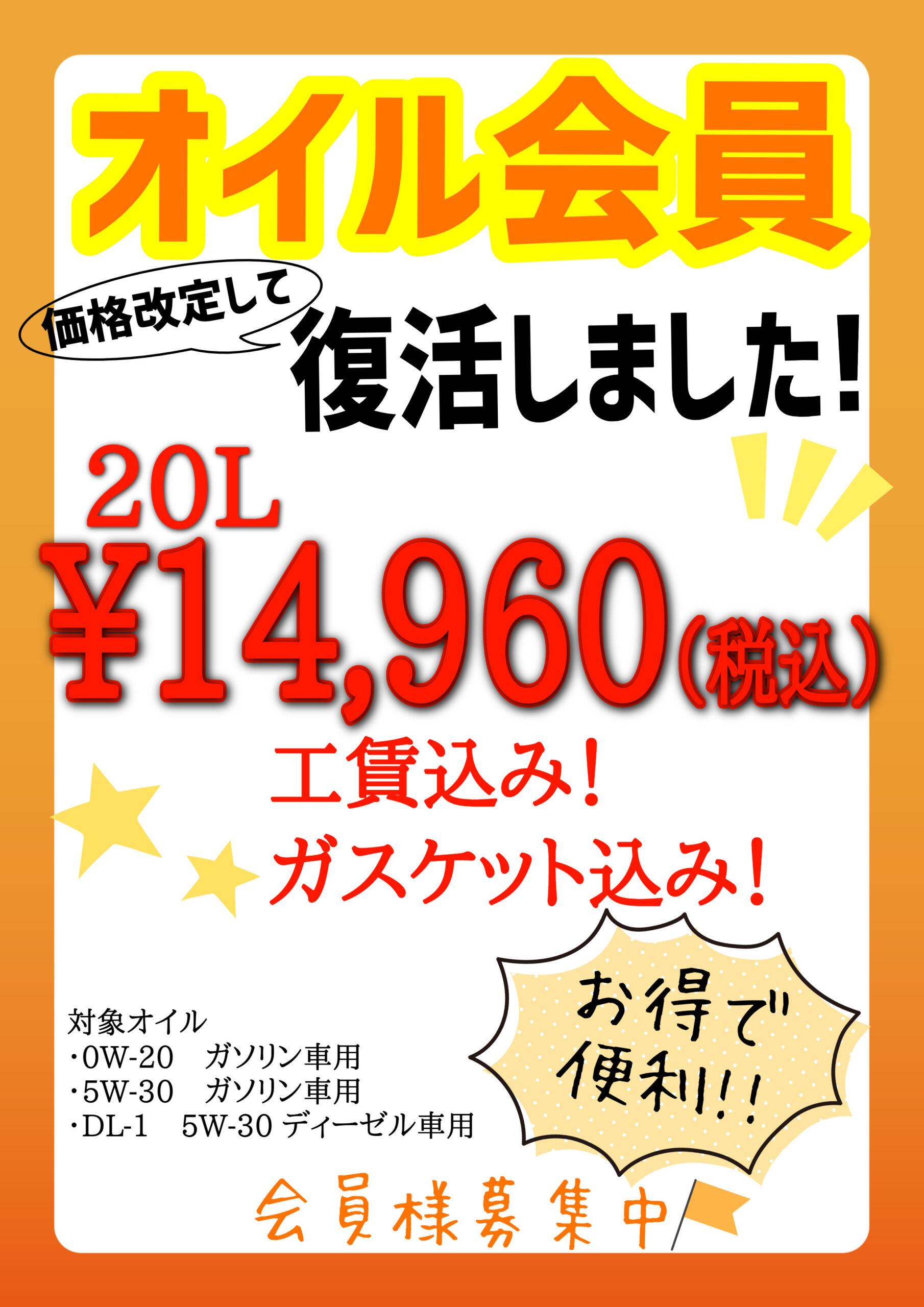 オイル価格高騰によりオイル会員更新、新規受付を停止しておりましたが、本日2月2日(金)よりサービス価格を改定して再開することとなりました!