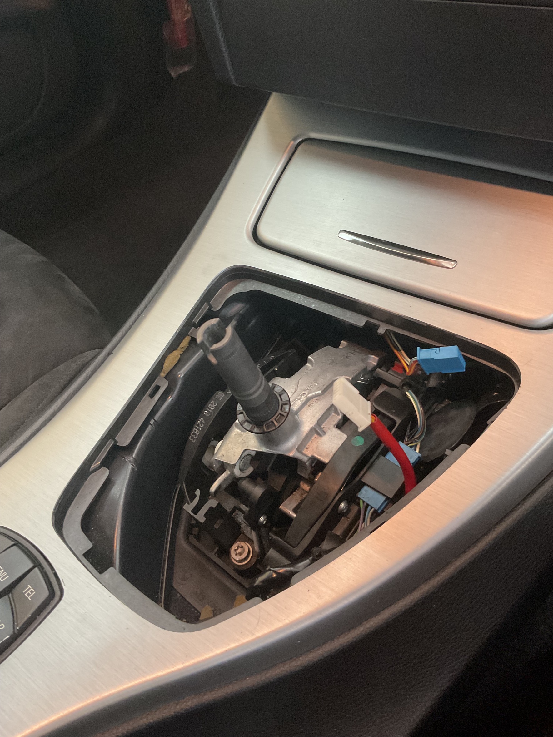 診断の結果、シフトノブ根本の配線が断線していました。