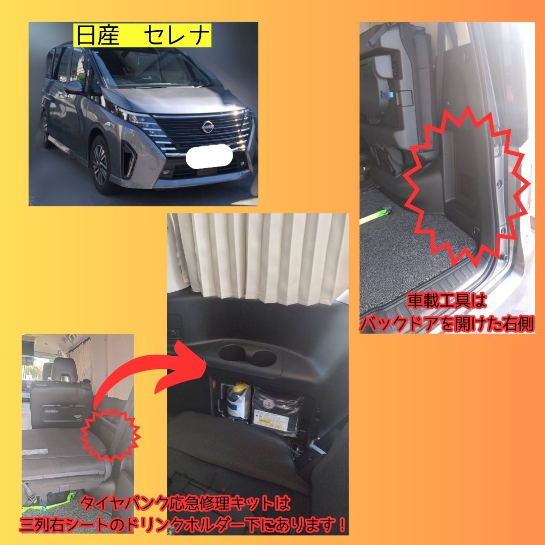 パンクしてしまい応急処置をする際に慌てないためにも、車内のどこにあるか確認しておくと安心です🙆♀️