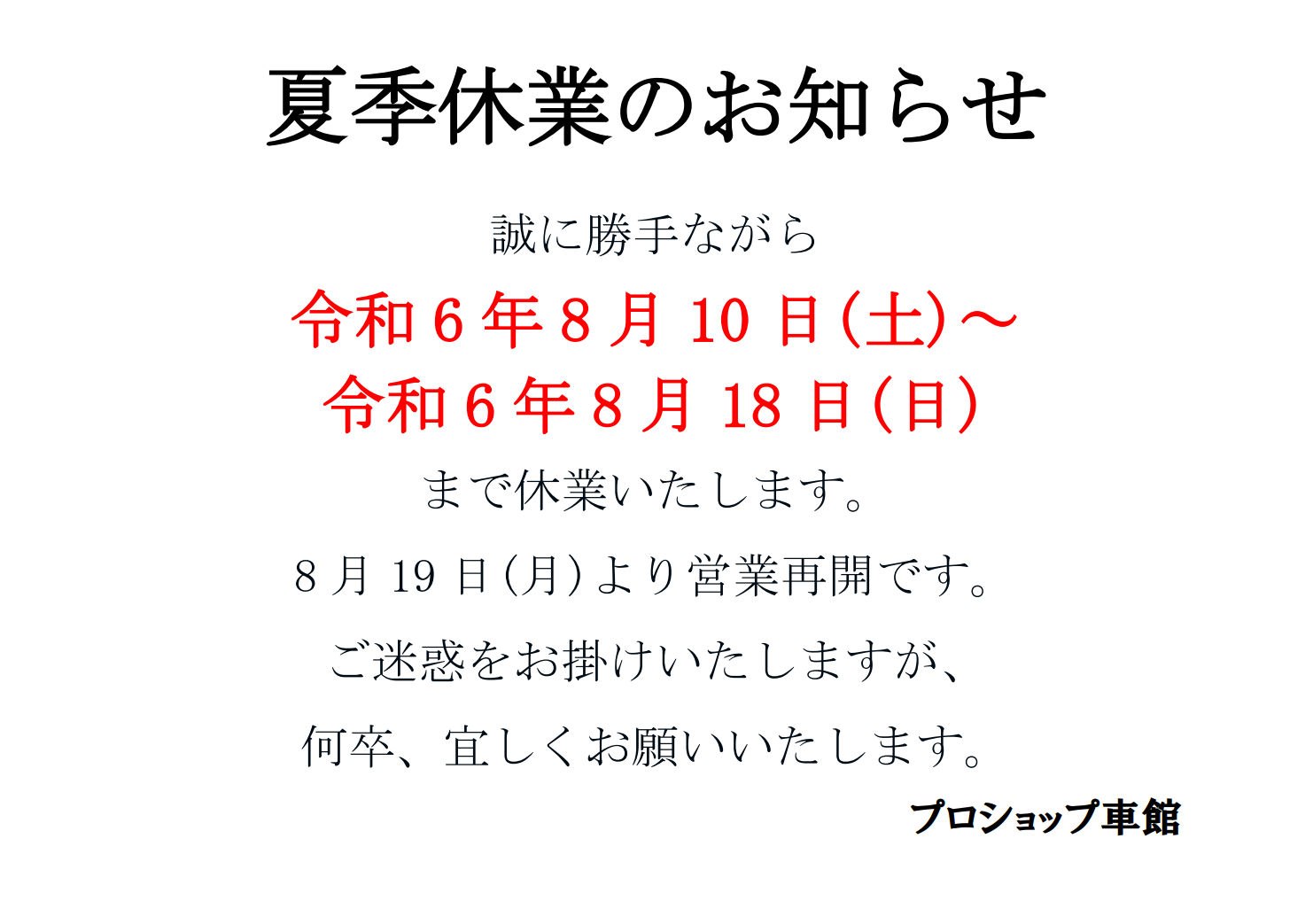 「お盆休みのお知らせ」