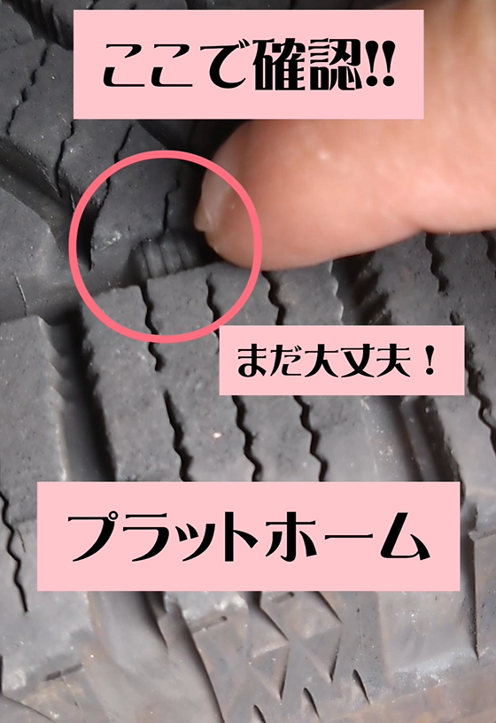 これは、冬用タイヤとしての使用限度を示すサインです。この部分が露出すると、冬用タイヤとしての使用は危険です🙅