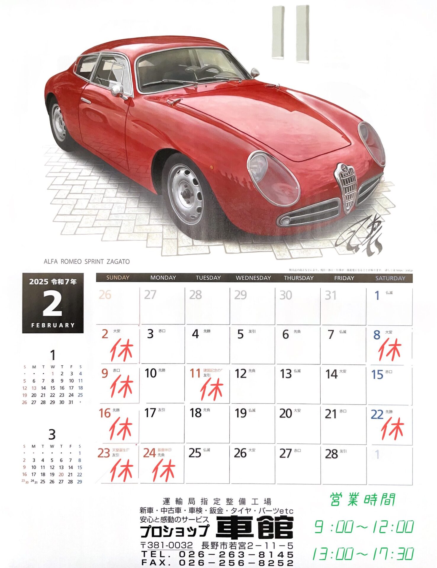 さて、2月の営業日をお知らせいたします。