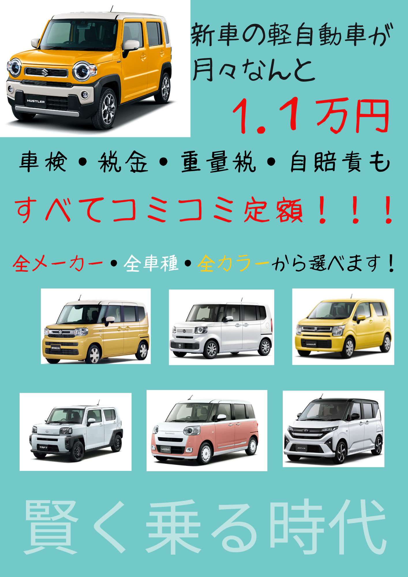 軽自動車はなんと1.1万円からお乗りいただけます!