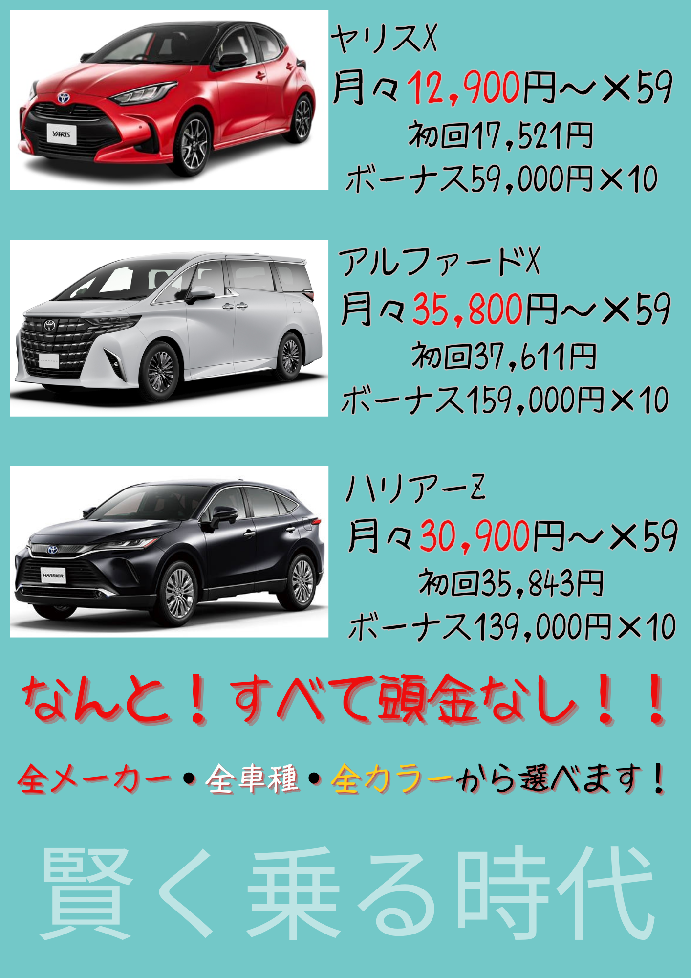 現在、お車を買うというより月々を安くしてサブスクのように考えられるお客様や企業の方がとても増えています👍