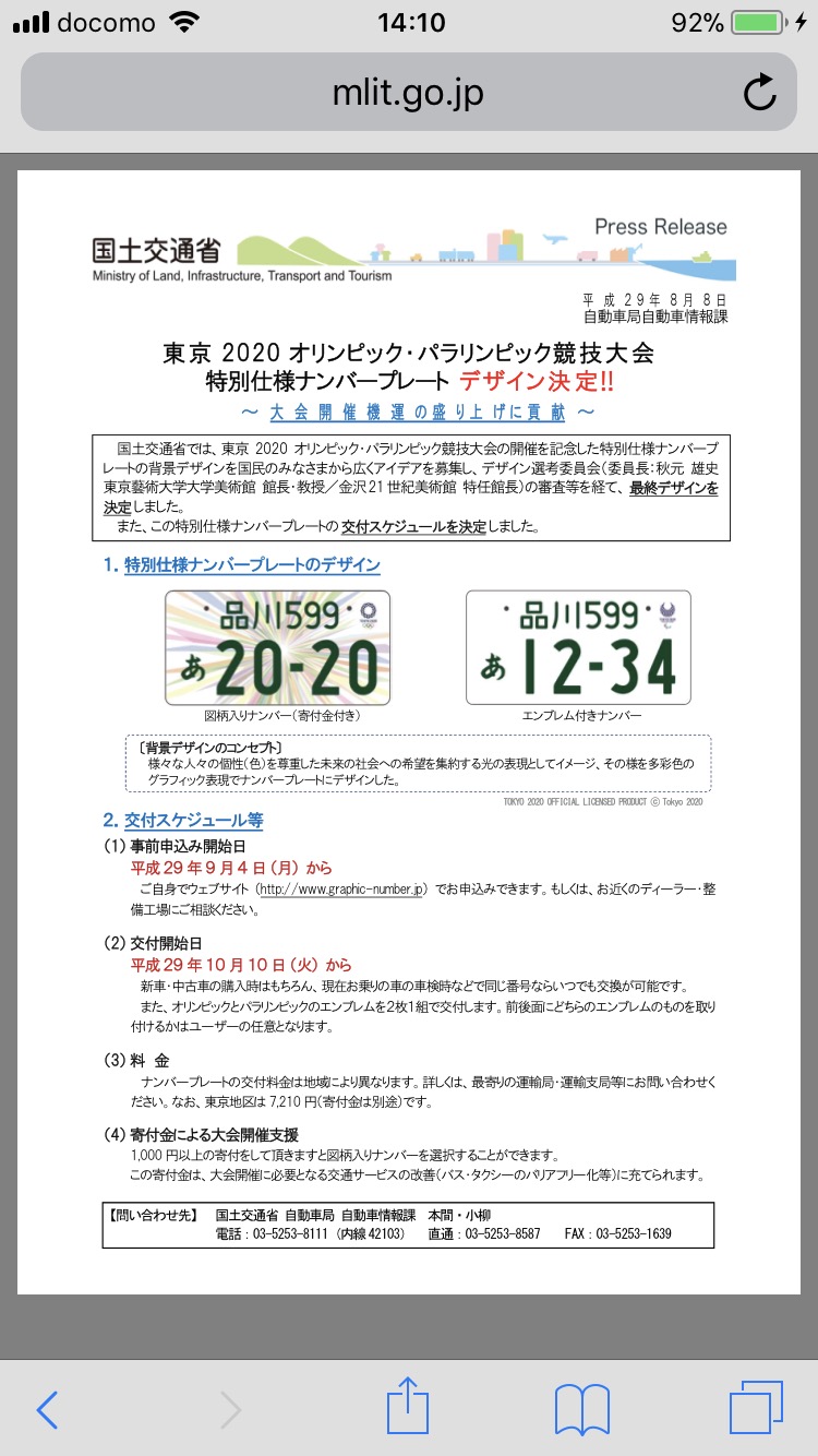 ブログ東京2020特別仕様ナンバー2017.10.05 「東京2020特別仕様ナンバー」 こんにちはいよいよ発売ですねー ラグビーも有りますが、こちらのデザインもカッコいいですねー。 詳しくは国土交通省のホームページにアクセスして下さい。 投稿ナビゲーション