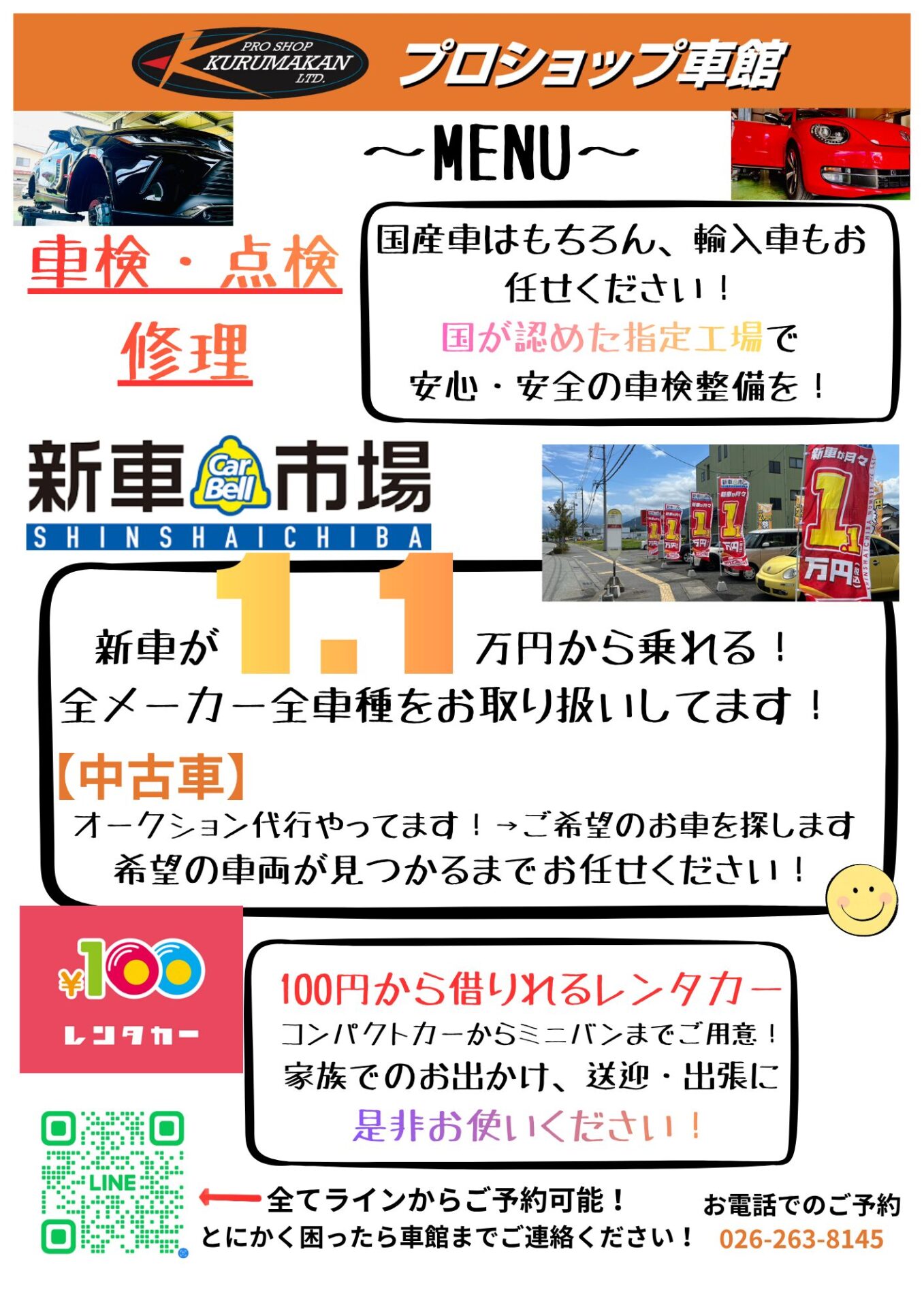 クルマの購入・車検・修理・鈑金・保険など、何でもお気軽にご相談ください。